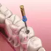 > Nouvelle obturation : une fois bien nettoyé et désinfecté, le canal à l’intérieur de la racine est obturé à l’aide d’une pâte étanche.